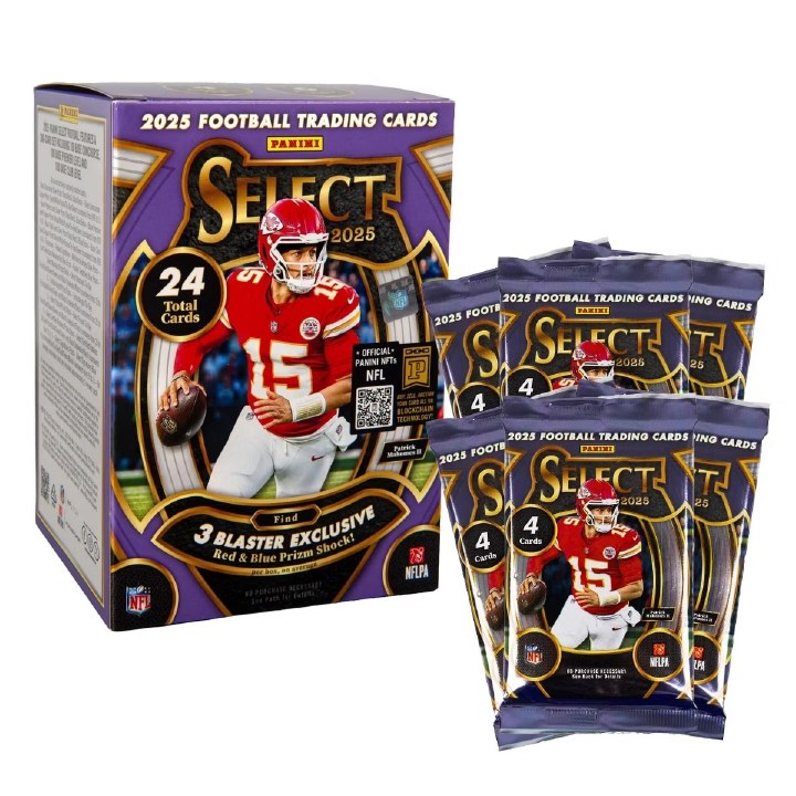 Select Football returns in 2025 with a massive five-tiered, 500-card base set that grows increasingly more rare with each tier. Also find a fantastic insert lineup that magnificently blends the best players of the past with the biggest stars of today.